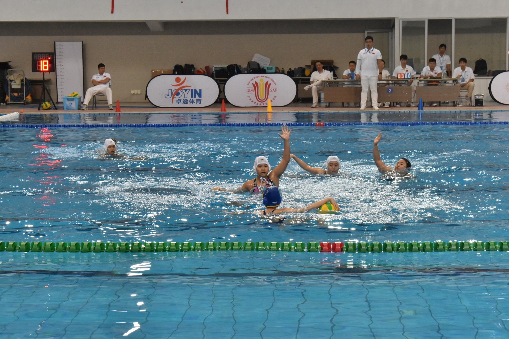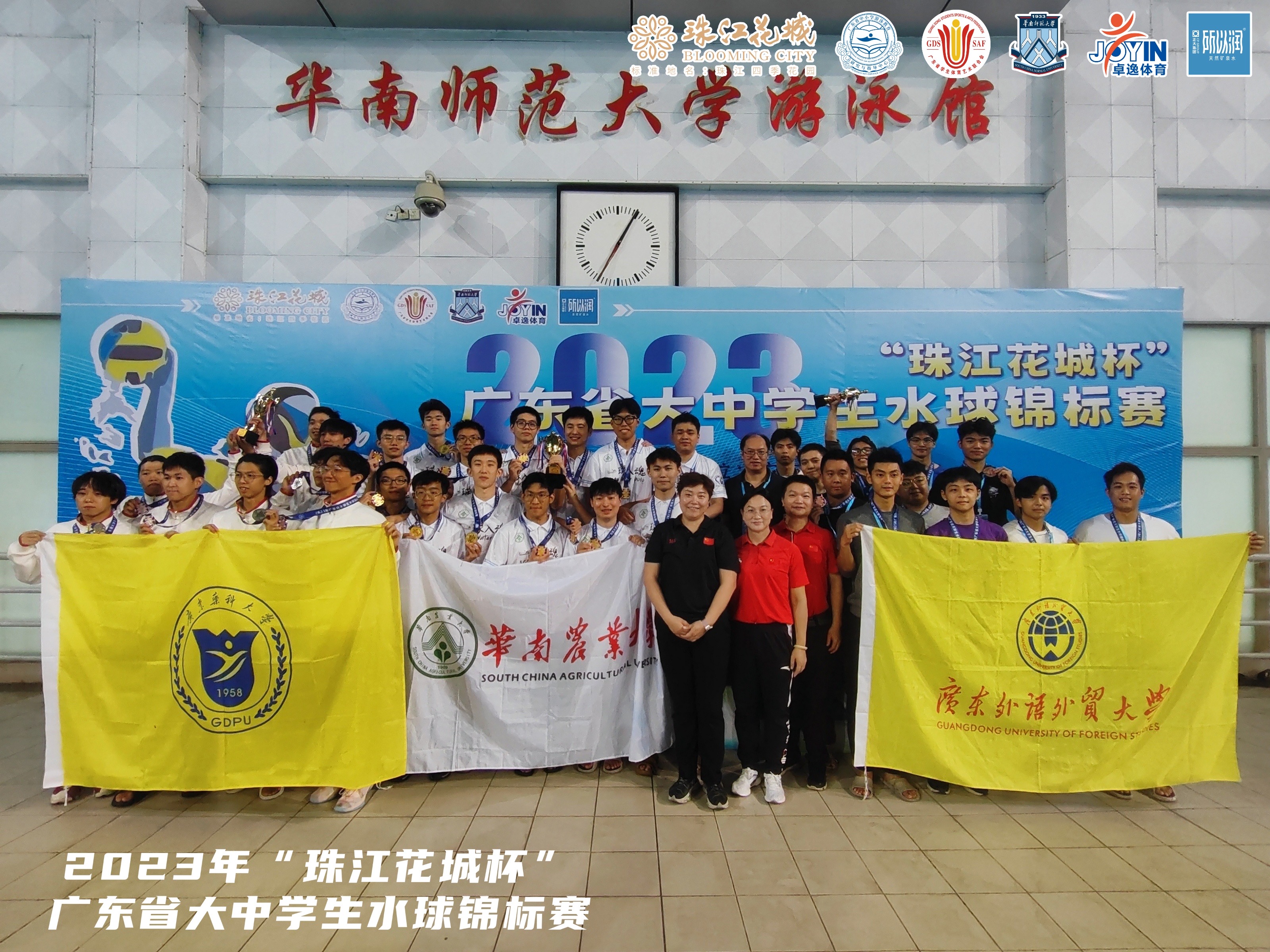 本网讯 2023年11月24-26日,广东省“珠江花城”大中学生水球锦标赛在华南师范大学游泳馆进行。我校在领队李旭武、教练员宁鹏、黄卓楠的带领下获得大学女子甲组第一名,大学男子甲组第三名,个人基本功比赛喜获女子甲组纵向摸高第一名,25m运球第一名,掷远第一名。