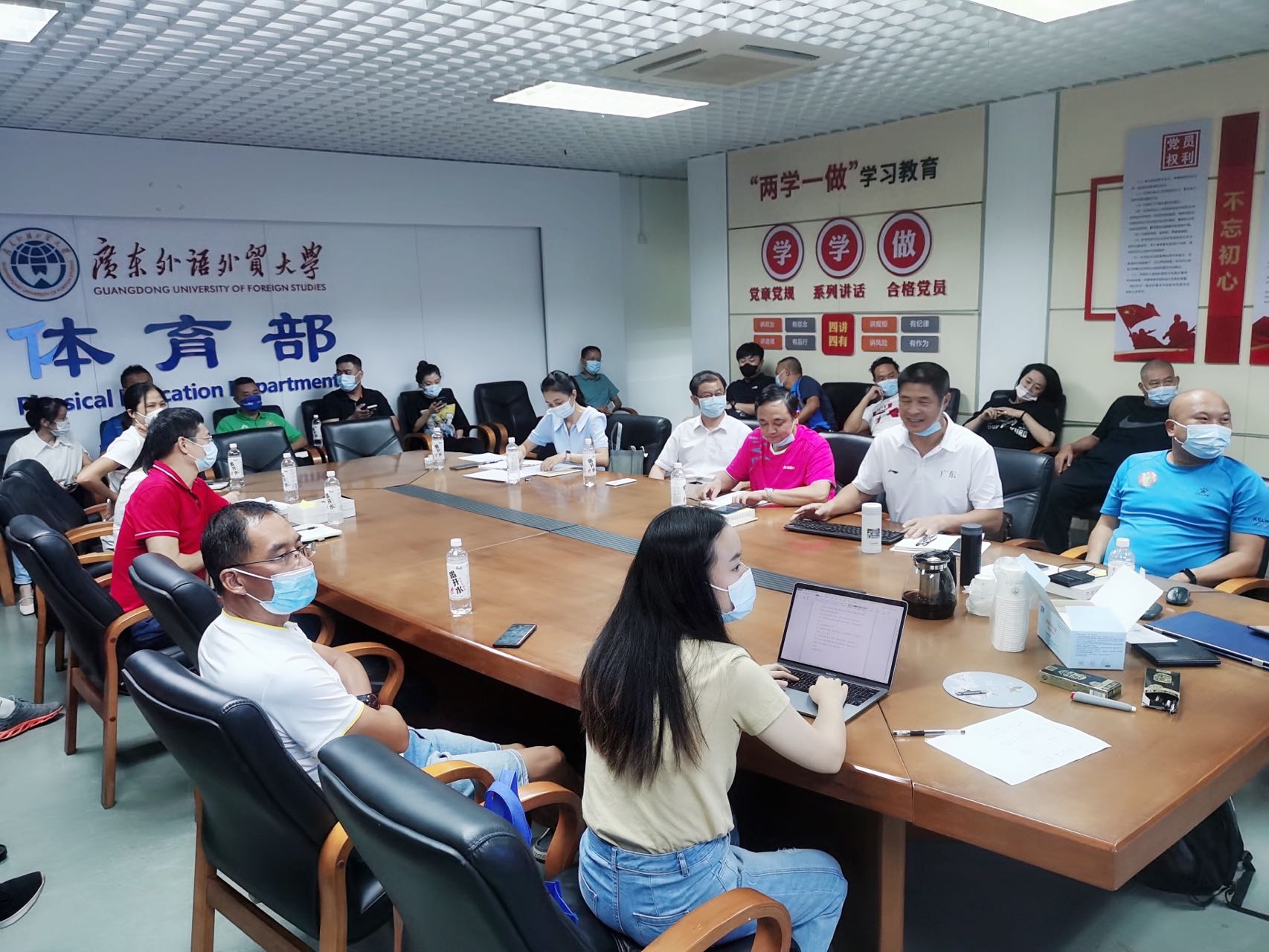 为贯彻落实广外党[2022]44号关于印发《广东外语外贸大学2022年中层领导人员换届工作实施方案》的通知要求,2022年9月22日上午,体育部在大学城校区会议室召开领导班子述职评议会。出席本次述职评议会的有考察组成员英文学院书记王则唐、经贸学院副书记陈思,以及体育部领导班子和全体教职工。何伟儒书记主持本次述职评议会。