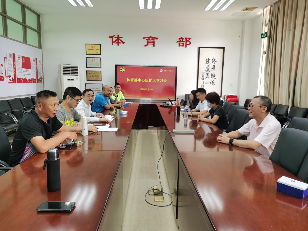 在中心组扩大学习会上,与会人员先后学习了“习近平总书记在党史学习教育动员大会上的重要讲话”、“巡视工作动员会精神”、“两会精神”以及《广东外语外贸大学二级学院党委(党总支)“履行政治责任、把好政治关”20条清单》,何伟儒书记强调:今年是建党100周年,各位党员领导干部应坚持“学党史、悟思想、办实事、开新局”,将政治理论学习与体育部“提高学生体质健康水平”的目标相结合,开创体育事业的新篇章。
