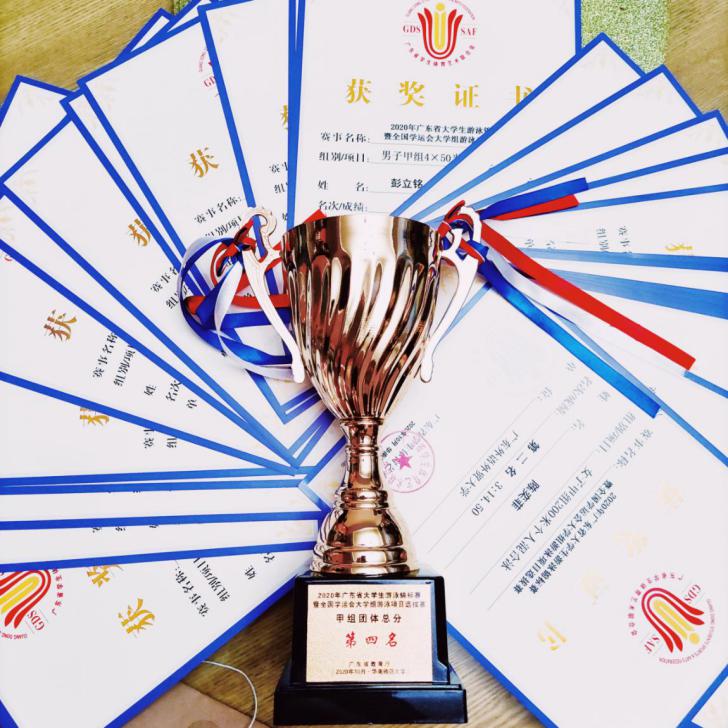 本次比赛受到疫情因素影响,时间紧、任务重,并且面临着新老交替的挑战。但是即便面对着许多的困难,各位运动员们依然坚持训练,奋力拼搏,在两天的比赛中,广外游泳队一共获得了3枚银牌、2枚铜牌,并夺得了甲组团体第四名的优异成绩。