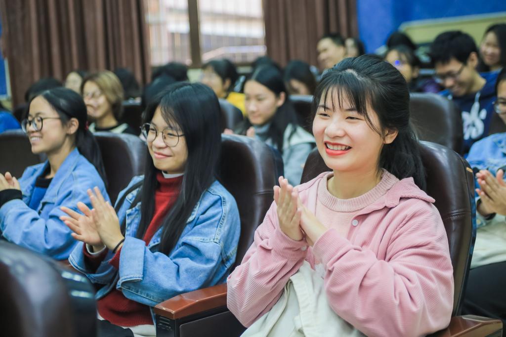 分享及访谈过后,三位冠军与同学们热情互动。同学们感到振奋人心,备受鼓舞,踊跃地提出了很多台球相关问题以及自身所处的状态问题。三位冠军表示广外学生思想活跃,对自身规划非常关注,并一一耐心解答了同学们的问题。她们鼓励同学们坚守初心和梦想,用心、坚持、永不放弃,并要时刻懂得感恩国家、社会以及亲朋好友。互动环节一度掌声不绝,非常火热。