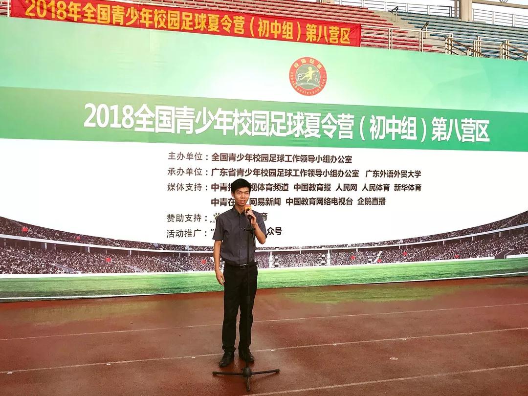 广东外语外贸大学体育部主任林少娜主持了这次的升旗仪式。她沉稳有力的声音指导着营员们进行这次仪式。