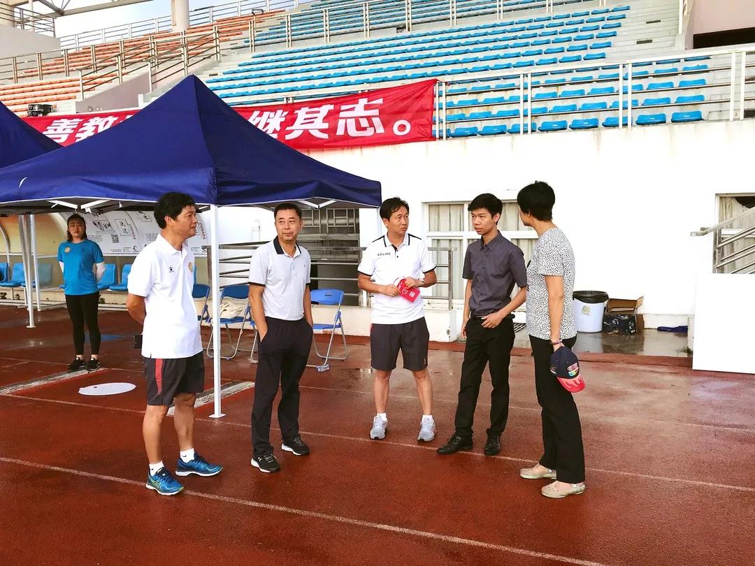 陪同前来的还有教育部体卫艺处干部朱红松、国内专家组组长邓世俊、国内专家刘飞振、丘乐威、广东外语外贸大学体育部主任林少娜。