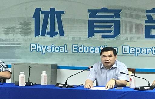 本网讯 2018年6月28日下午,体育部为落实校党委组织部《关于做好2018年度(年中)基层党组织书记抓基层党建述职评议考核工作的通知》的要求,在南校区体育馆新闻发布厅召开党总支书记李旭武同志的2018(年中)基层党建述职会议。参加述职会议的有广东外语外贸大学党委常委、副校长焦方太,体育部领导班子成员和全体教工党员。