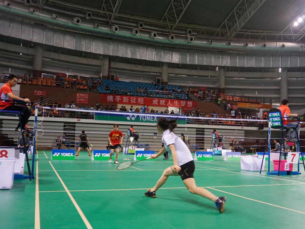 赛场上热闹非凡,热火朝天,参赛选手们一个个精神抖擞,意气风发。很多选手身手敏捷,技巧娴熟,看他们时而网前截击,时而以巧破千斤,时而大力扣杀。