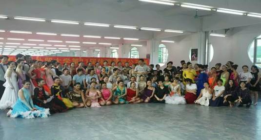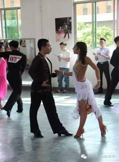 本网讯 2016年6月2日,广外北校区体育部二楼熙熙攘攘、热闹非凡。华丽的燕尾服、性感的拉丁裙,行云流水的华尔兹,表情严肃的探戈,若即若离的伦巴,俏皮可爱的恰恰,火辣辣的桑巴,舞者们的激情表演让在场的观众时而鸦雀无声,时而尖叫不已,欲罢不能。这里不是英国的黑池,而是广外第11届体育舞蹈公开赛比赛的现场。
