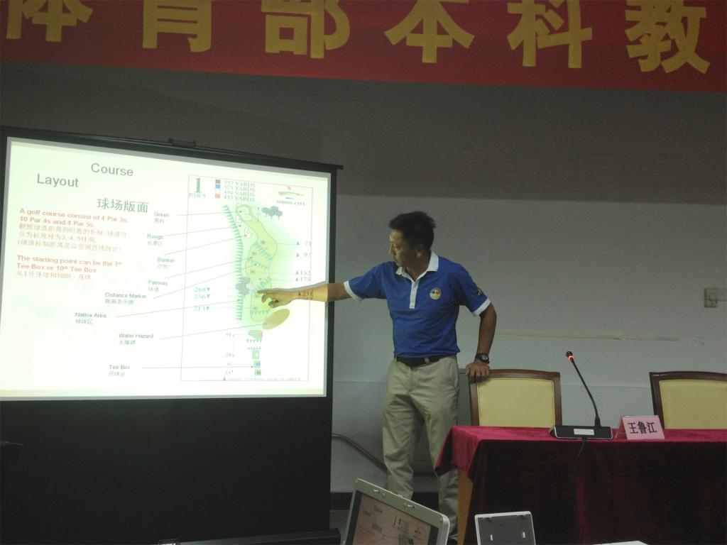 会后,按照体育部教学质量活动月的安排,王鲁江老师为大家讲授了一堂“高尔夫基础培训”,为高尔夫运动在体育部的普及拉开序幕。