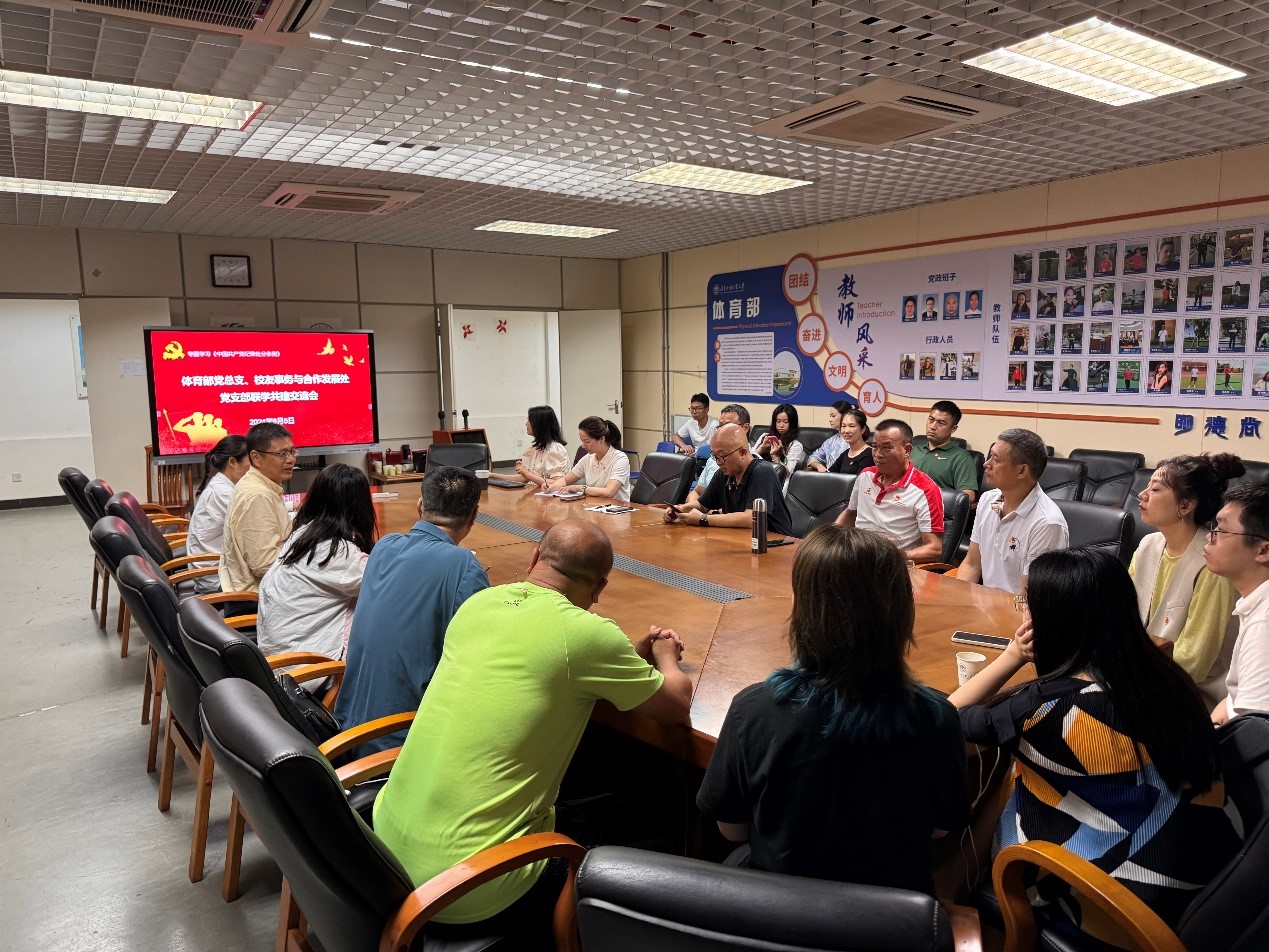 活动伊始,全体人员在大学城校区体育馆会议室召开学习会。会上,体育部副主任黄超群老师结合丰富生动的案例,带领大家深入学习了新修订的《中国共产党纪律处分条例》第49—59条,并对其中的重点及亮点进行了介绍。随后,双方一同观看警示教育专题片“《零容忍》第二集《打虎拍蝇》”,体育部党总支书记钟罗军对本次活动的意义和日常安排进行了阐述,他指出,此次两个单位联合举办“党纪学习教育”主题党日活动不仅为双方提供了深入学习党的纪律的机会,也为加强彼此之间的沟通与协作搭建了重要平台。校友事务与合作发展处副处长(主持工作)、党支部书记刘庆丹表示,本次作为学校的党员干部,我们要时刻保持清醒的头脑,坚守党的纪律和规矩,以实际行动践行党的宗旨。通过此次交流活动,必将推动我们进一步加强党性教育和纪律建设,不断提高自身素质和能力水平,为学校的发展贡献自己的力量。