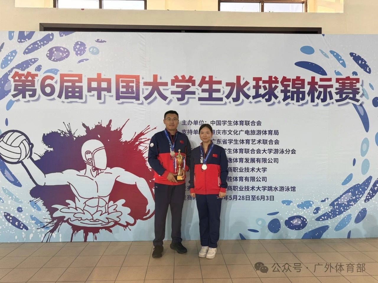 本网讯 2024年5月30日,第六届中国大学生水球锦标赛在广东省肇庆市拉开帷幕。来自全国各地的23所高校、38支队伍、近500名选手在为期5天的赛事中展开激烈角逐。广东外语外贸大学在领队李旭武、教练宁鹏、黄卓楠的带领下经过激烈角逐,获得了女子甲组亚军的好成绩。教练员宁鹏获得“优秀教练员”荣誉称号。