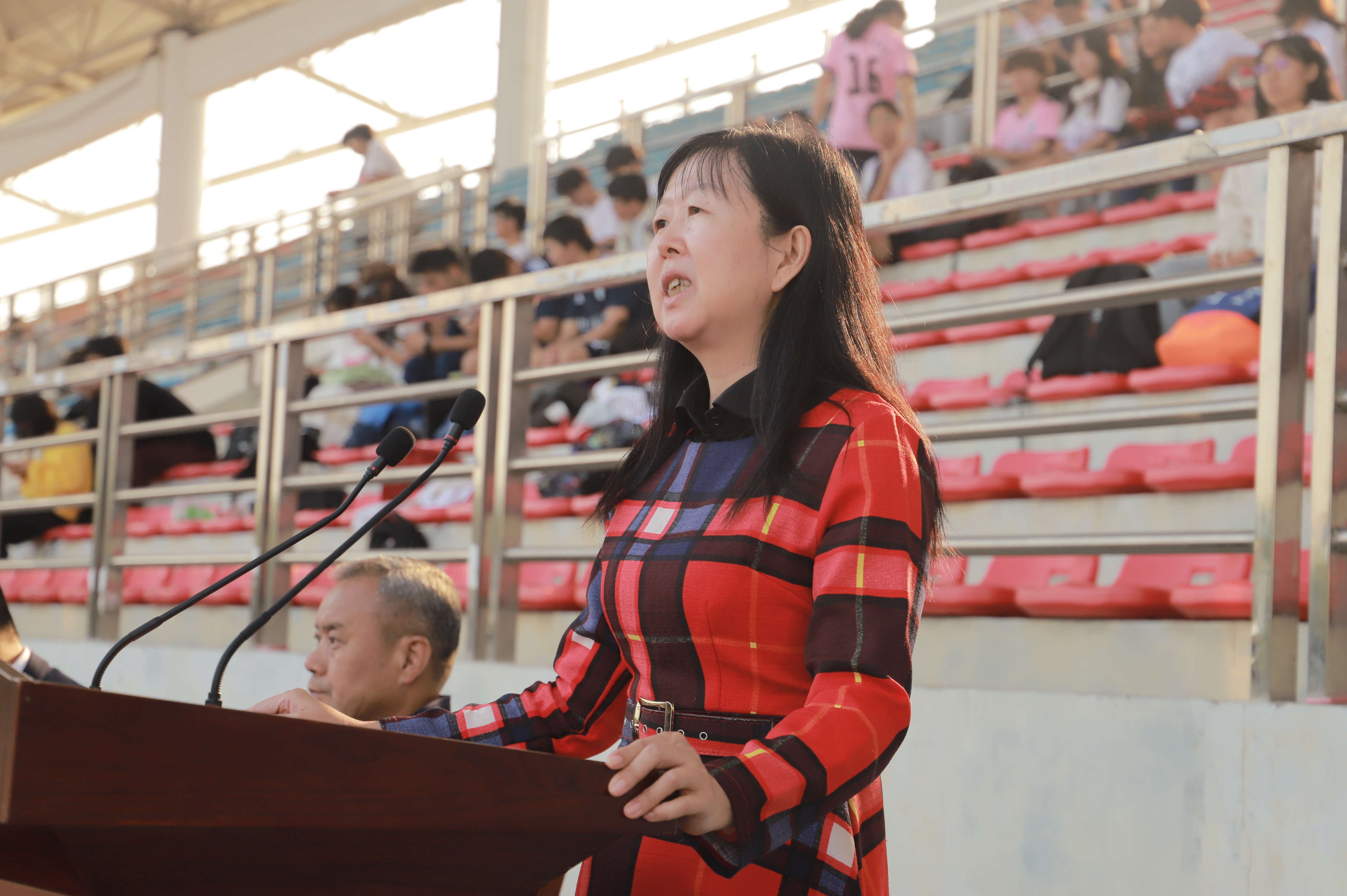 广东外语外贸大学党委副书记葛小月在开幕式中致辞,向莅临开幕式的领导、嘉宾和媒体朋友们表示热烈的欢迎,对辛勤筹备本次赛事的工作人员表示衷心的感谢,向全体运动员、教练员致以美好的祝愿。她向与会来宾简要介绍了广东外语外贸大学体育事业的发展现状,并指出体育是实现立德树人根本任务、提升学生综合素质的基础性工程,也是建设教育强国和体育强国的重要内容。一直以来,广外坚持“德智体美劳”五育并举的教育理念,把开展体育运动作为人才培养工作的重要一环。广外师生在各级赛场上奋勇拼搏,为国家、广东省和学校赢得了众多荣誉。葛书记最后表示,广外有多项大型体育赛事和活动的承办经验,我们将严格按照组委会的各项要求,确保赛事顺利进行,在推进广东省校园足球事业发展进程中积极贡献广外力量。