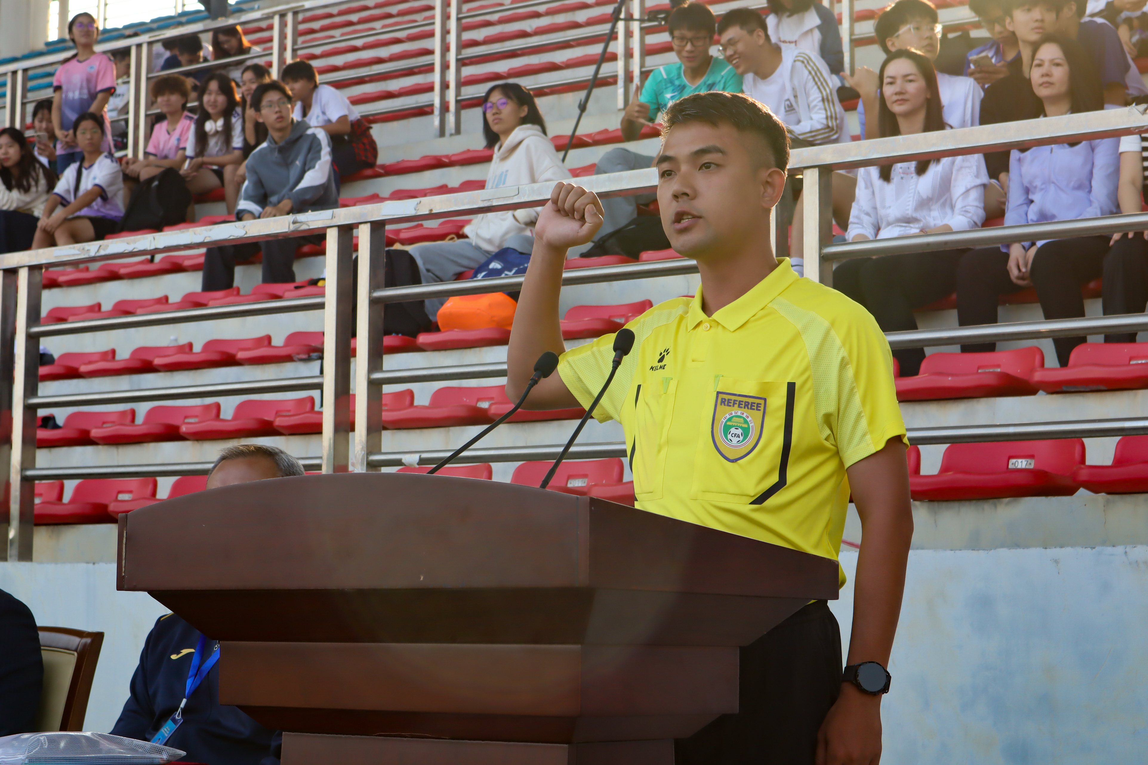本网讯 12月5日下午,2024年广东省青少年校园足球联赛(大学组)总决赛在广东外语外贸大学真草田径场隆重开幕。广东省教育厅副厅长程大欣、广东外语外贸大学党委副书记葛小月、广东省足球协会主席谢昌晶、广东省学生体育艺术联合会会长朱征宇、广东工业大学党委副书记陈卓武、广东药科大学副校长杨全、广东省教育厅体卫艺处二级调研员董业权、中山大学体育部主任范振国以及广东外语外贸大学、广东工业大学、广东药科大学相关部门、学院负责人出席开幕式,裁判员、教练员、运动员代表及广东外语外贸大学全体师生参加了开幕式。开幕式由广东外语外贸大学体育部主任李旭武主持。