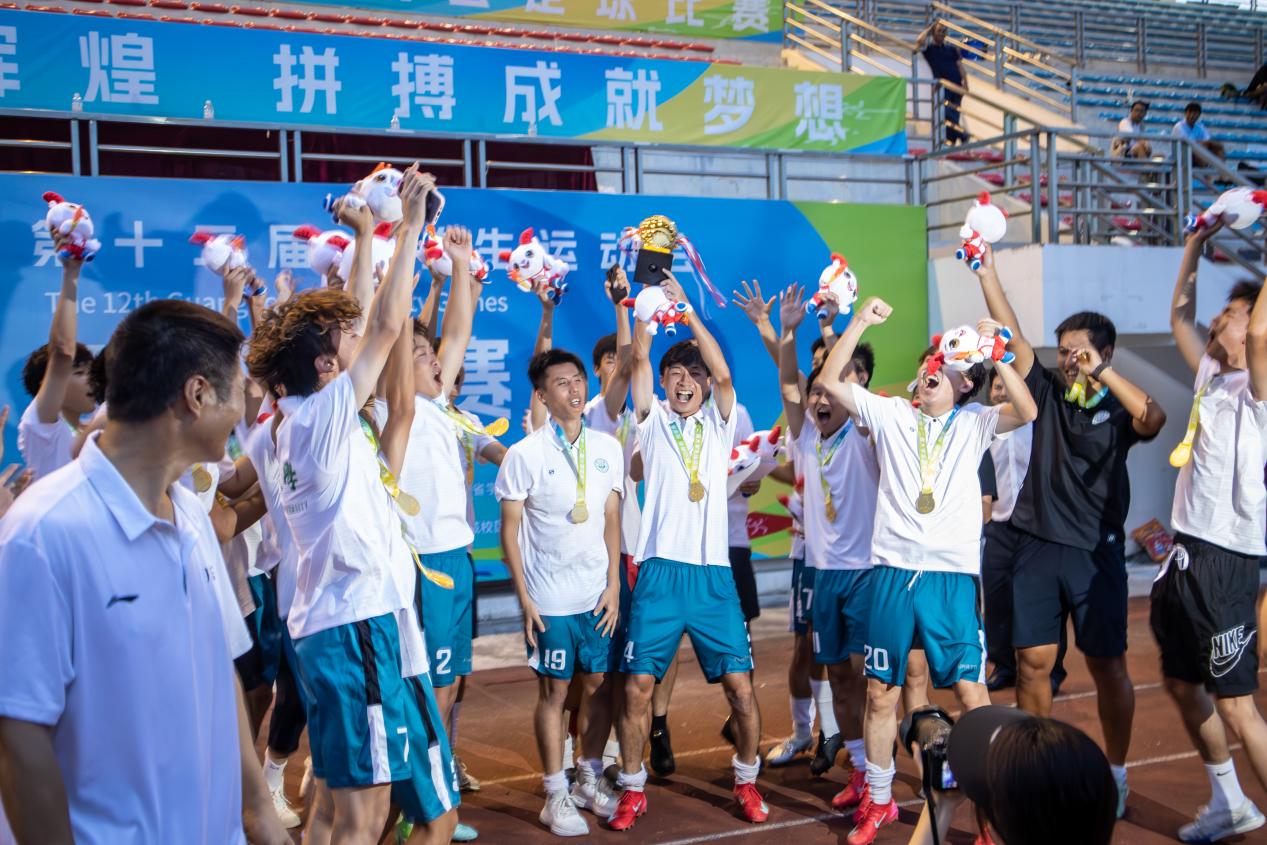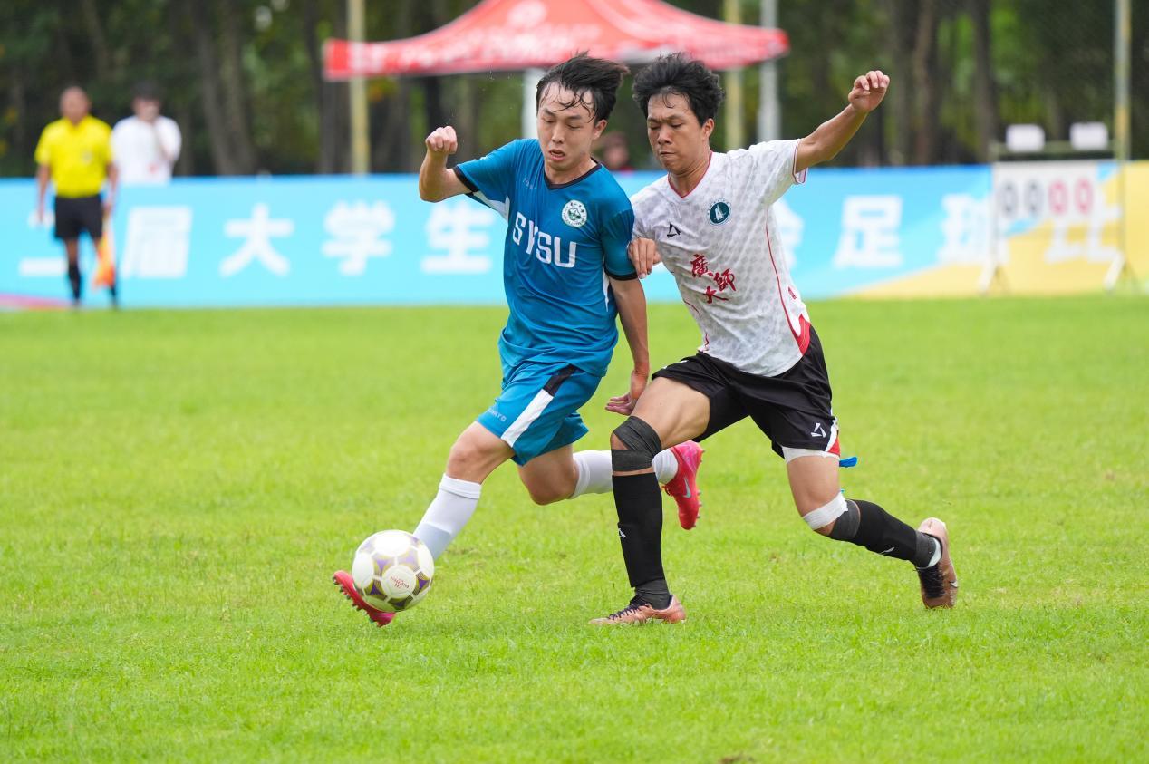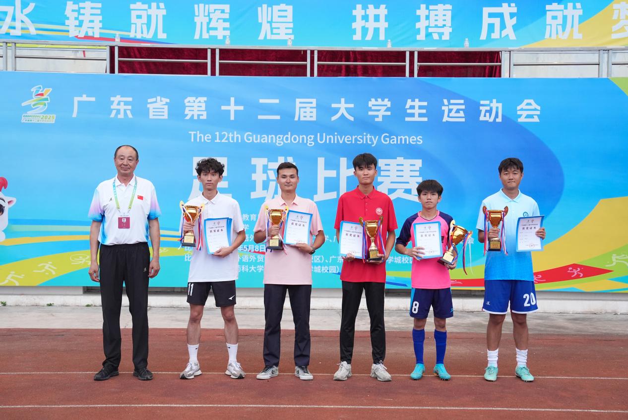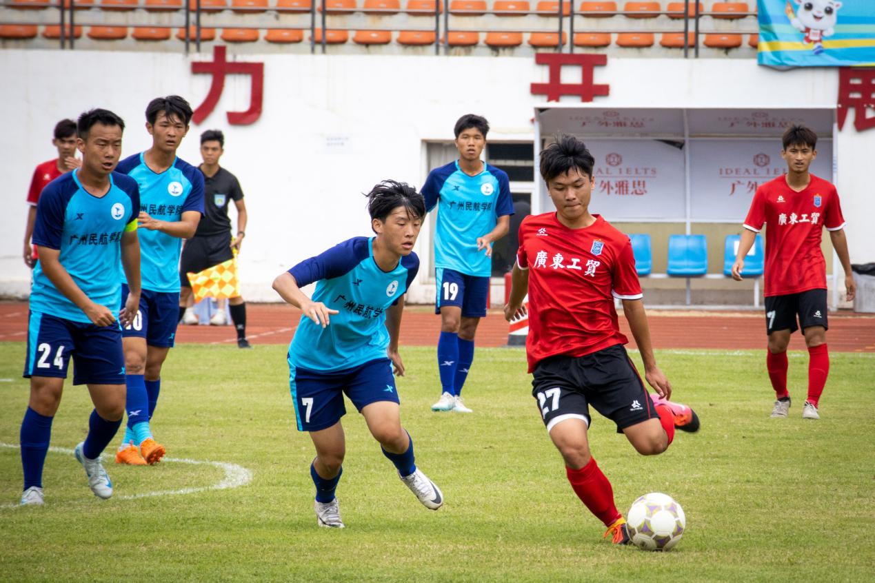 在男子足球比赛中,中山大学、广东技术师范大学、华南理工大学分获男子甲组冠亚季军;广州体育学院、华南师范大学、广州应用科技学院分获男子乙(A)组冠亚季军;广州体育学院、广东工业大学、嘉应学院分获男子乙(B)组冠亚季军;广东工贸职业技术学院、广州民航职业技术学院、广东创新科技职业学院分获男子丙组冠亚季军。