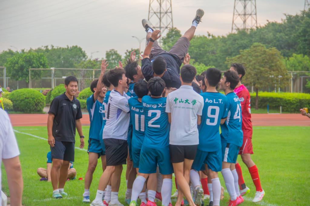 中山大学庆祝获得冠军(男子甲组)(李逸桐/摄)