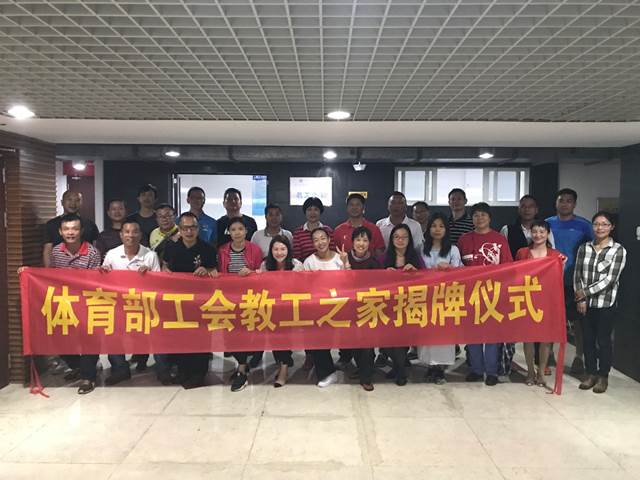 本网讯 在春意盎然的四月,校工会在大学城校区精心打造了一个温馨舒适的教工之家,于4月12日上午正式揭牌启用。我校体育部主任林少娜、体育部党总支书记李旭武以及全体体育部人员参与了揭牌仪式,活动由体育部工会主席王鲁江同志主持。
