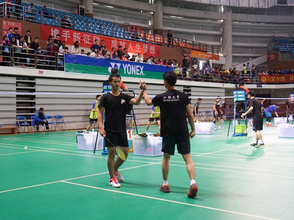 下午,甲组男单的第一轮、女单的第二轮比赛打响,作为激烈的个人赛事无疑吸引了大批观众,场内加油呐喊声、战术讨论声不绝于耳。与之同时进行的还有甲组男双、女双和混双的第二轮比赛,它们穿插于个人赛事之中,无论是场内在校的学生还是运动员团队都为各自运动员一次次的完美配合、惊险救球而奋力鼓掌、高呼口号,尤其是华南理工大学的随行团,每看见其运动员的一次赢球都高声呐喊专属的口号,实在是令人振奋。随之而来的还有乙B组男单第一轮、男双第二轮,随着赛事的白热化,坐在第一排的观众都禁不住站起来捕捉运动员的每一步动作,生怕看漏了重要的一球。今日最后的是丙组混双的第一轮比赛,大抵是因为比赛临近尾声,场内观众也相对减少,所以运动员感觉到负荷稍大,空气胶着令人紧张;不过尽管如此,到场的运动员们都展现了极高的体育素质和饱满的热情,为今日的比赛画上一个完美的句号。