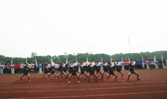 领操的是我校健美操啦啦操队NCA TEAM及其带队老师——健美操世界冠军黎良发老师,该队伍在黎老师的带领下曾多次揽获国家级省级健美操啦啦操竞赛金银铜牌,并且将在下周赴日本参加国际大型比赛!