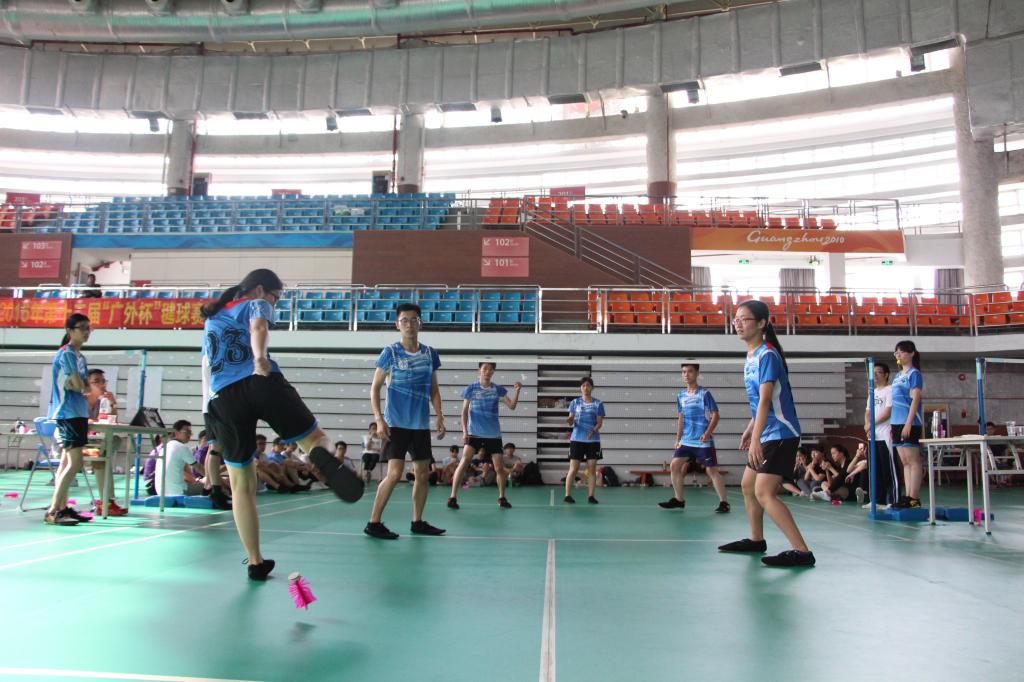 本网讯 2016年5月22日上午9:00,由广东外语外贸大学体育委员会主办、广东外语外贸大学体育部承办、广外毽球协会协办的第十二届广外杯毽球赛在广东外语外贸大学南校区体育馆正式开幕。本次的活动本着友谊第一的运动精神,让参赛队员充分的发挥自己的技艺。比赛目的是为用运动的形式让各毽球爱好者加强交流,各成员相互切磋,同时使同学们能够有一个展示自身球技的舞台。