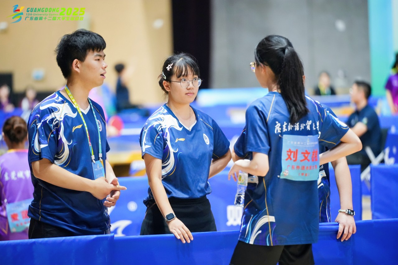 在领奖台上闪耀的不仅是奖牌的光芒,更是队员们日复一日刻苦训练的结晶。这份荣誉背后,是无数个在训练馆挥汗如雨的日夜,是教练团队的悉心指导,更是广外体育精神的生动体现。主教练孙艳玲老师从赛前备战到临场指挥都倾注了大量心血,她以丰富的带队经验为队员们保驾护航,在关键时刻给予心理疏导和战术建议。教练员王道平老师和黄泽鑫队长凭借专业的执教水平,针对每位队员的特点制定个性化训练方案,在技术上精雕细琢,在战术上运筹帷幄。体育部的老师们则在后勤保障上不遗余力,从训练场地安排到参赛物资准备,从体能康复到营养补给,为队员们创造了最优质的备战环境。