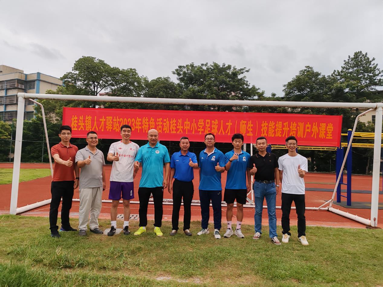 为深入学习贯彻党的二十大精神,推动学习贯彻习近平新时代中国特色社会主义思想,助力全面实施乡村振兴战略,2023年6月14日,体育部党总支委派体育部党员代表丘乐威、黄德沂教授赴韶关市乳源县开展桂头镇人才驿站2023年特色活动桂头中小学足球人才(师生)技能提升培训户外课堂。