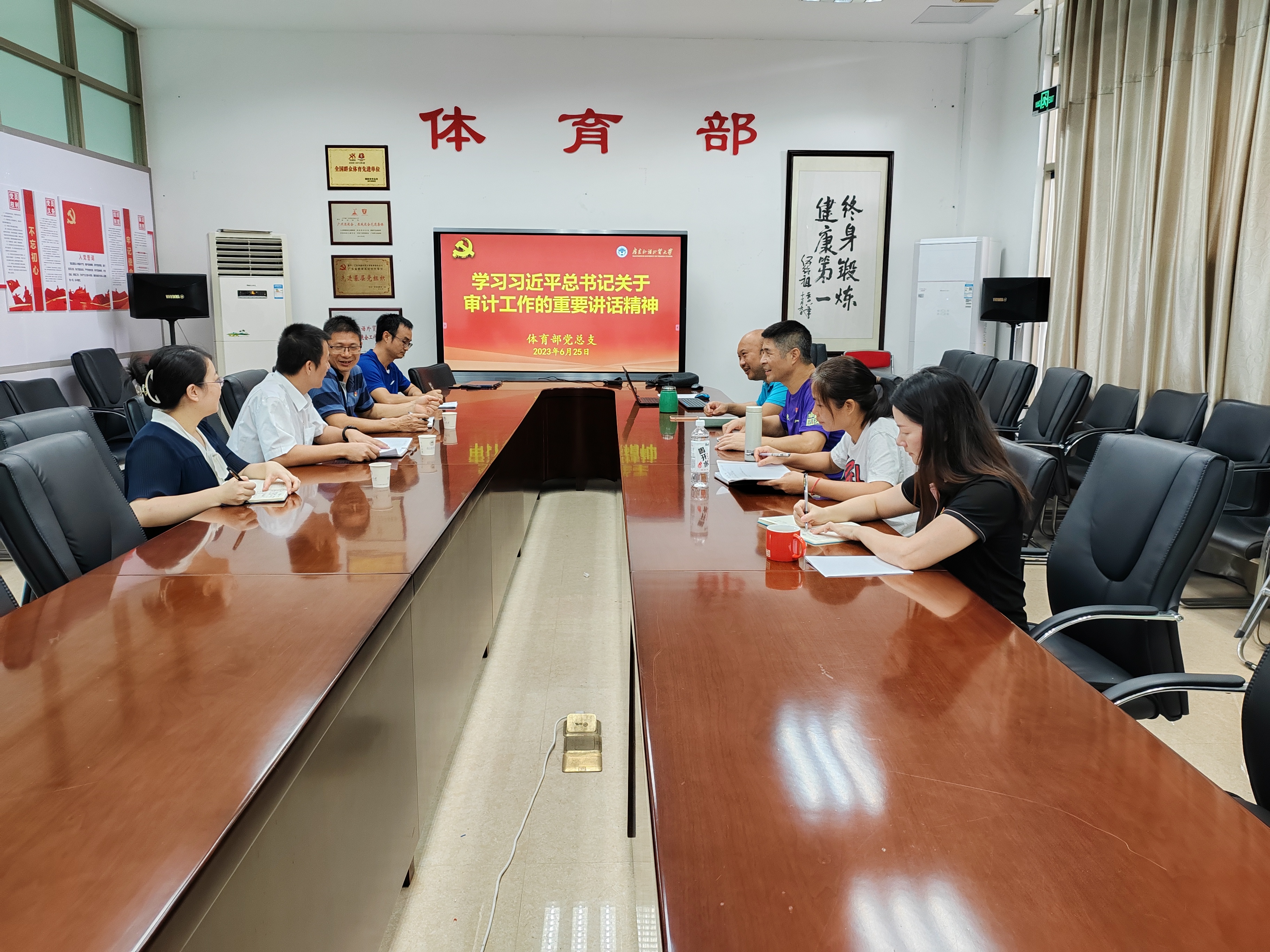本网讯 6月25日,体育部党总支和审计工作部党支部在白云山校区体育部会议室联合开展以“学习贯彻习近平总书记关于审计工作的重要讲话精神”为主题的,学习贯彻习近平新时代中国特色社会主义思想主题教育。体育部党总支书记钟罗军,体育部主任、党总支副书记李旭武,审计工作部党支部书记曾健文及有关代表参加联学。