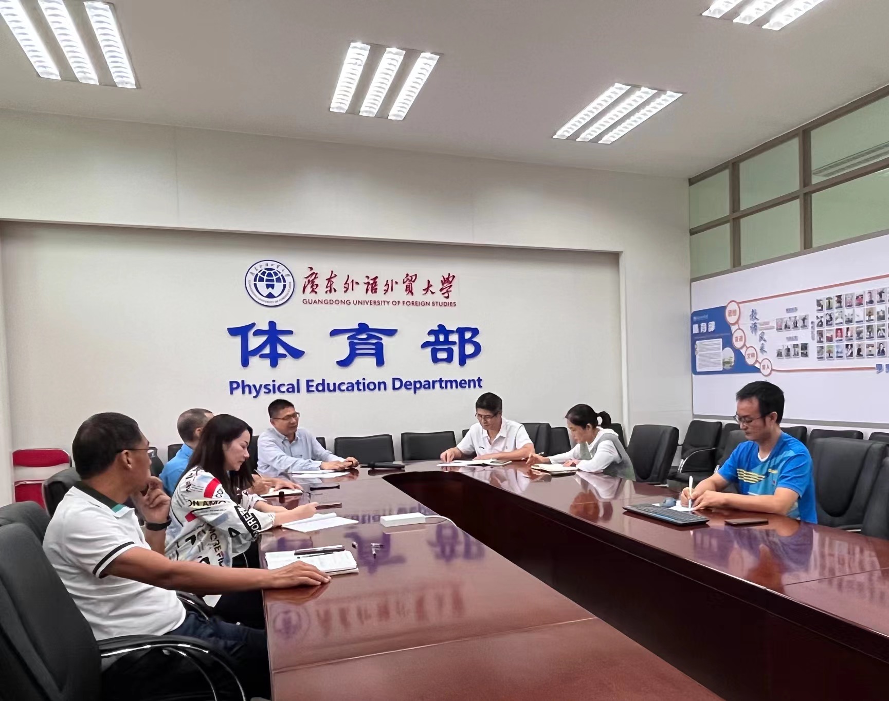 李旭武表示我们要深入贯彻落实习近平总书记关于体育强国建设的重要论述,一是要聚集“教会、勤练、常赛”,依托课内外一体化的体育教育教学工作体系开展群众体育发展基础。二是打造综合运动会和系列体育品牌活动,完善校园体育竞赛体系。三是加强学生运动队建设,鼓励学生体育骨干在活跃校园体育文化上发挥示范引领作用,促进学校竞技体育发展。将党的二十大提出的新目标、新要求、新任务与体育部实际工作相结合,加强课程思政建设,推动体育部各项事业迈上新台阶,为加快体育强国建设目标做贡献。