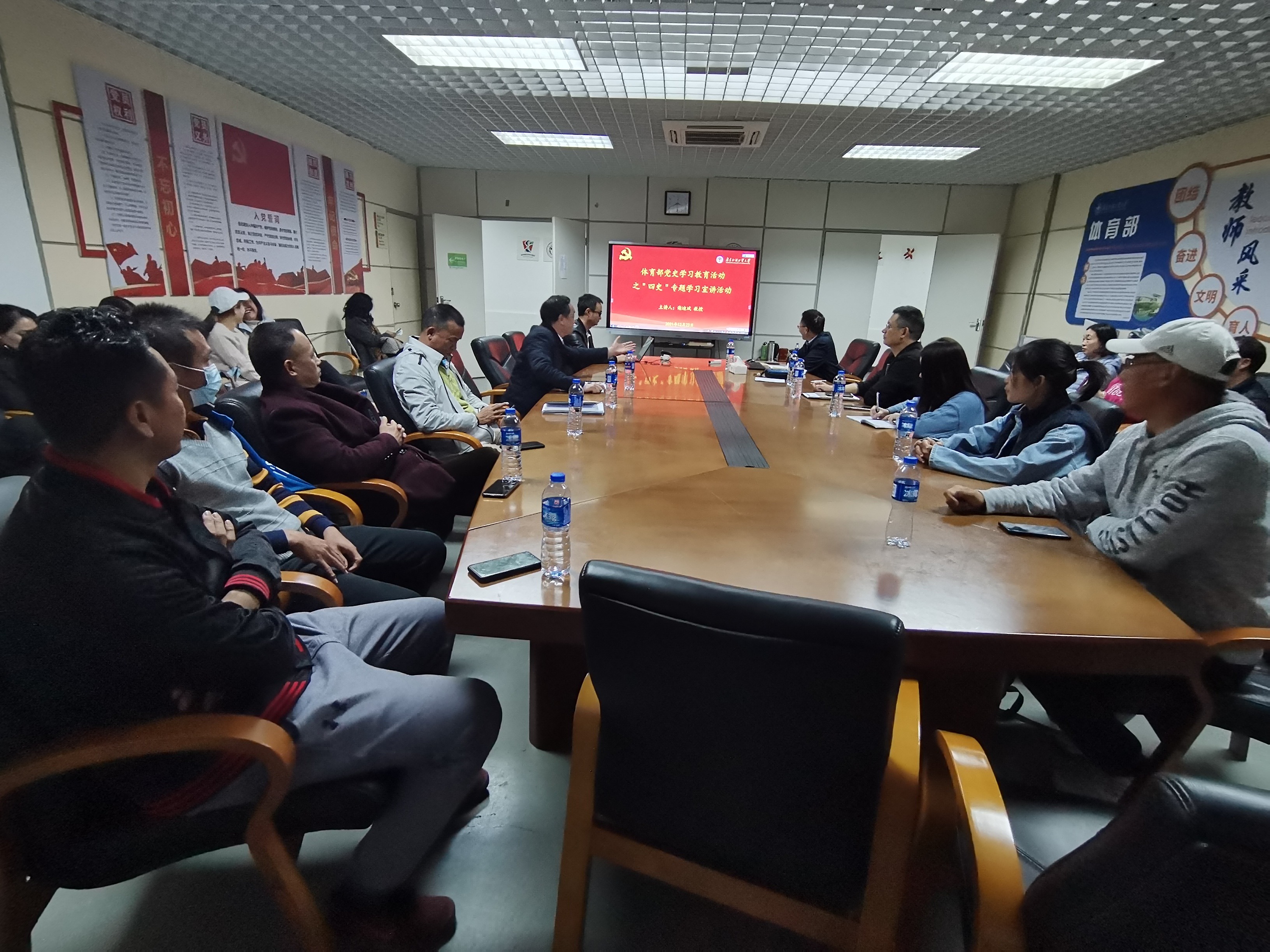 12月23日,体育部在南校区体育馆会议室开展“四史”专题宣讲活动,邀请校党史宣讲团成员、马克思主义学院院长谢迪斌作专题宣讲,体育部全体教职工党员参加宣讲。
