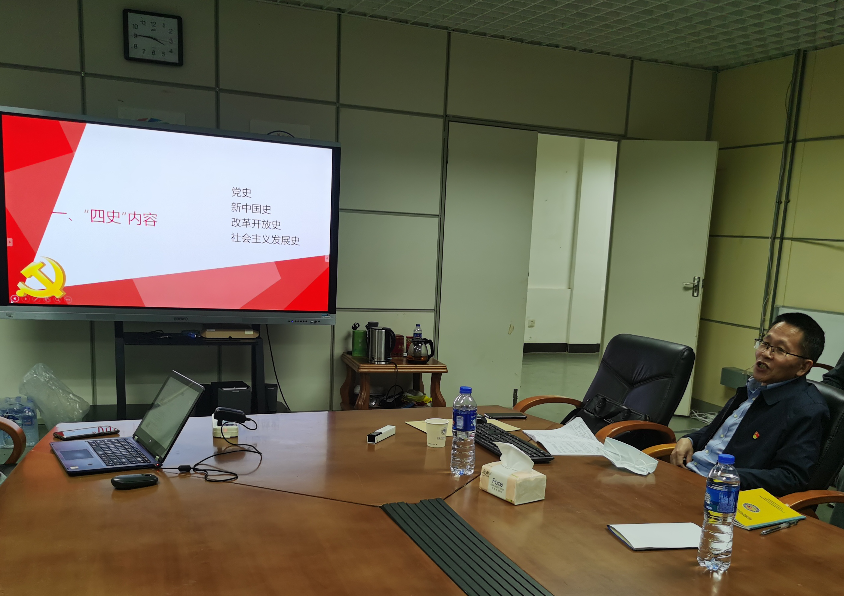 谢迪斌以“在“四史“学习中明理增信”为题,从“四史”宣讲开展背景切入主题,运用通俗易懂的语言结合身边实际案例深入浅出地为大家讲解了党史、新中国史、改革开放史、社会主义发展史的内涵,并从五个方面提出了如何学习“四史”,他指出,回顾历史是为了总结历史经验、把握历史规律,增强开拓前进的勇气和力量,保持一往无前的奋斗姿态和永不懈怠的精神状态,要始终坚持做到以史为镜、以史鉴今,不忘初心、勇担使命。