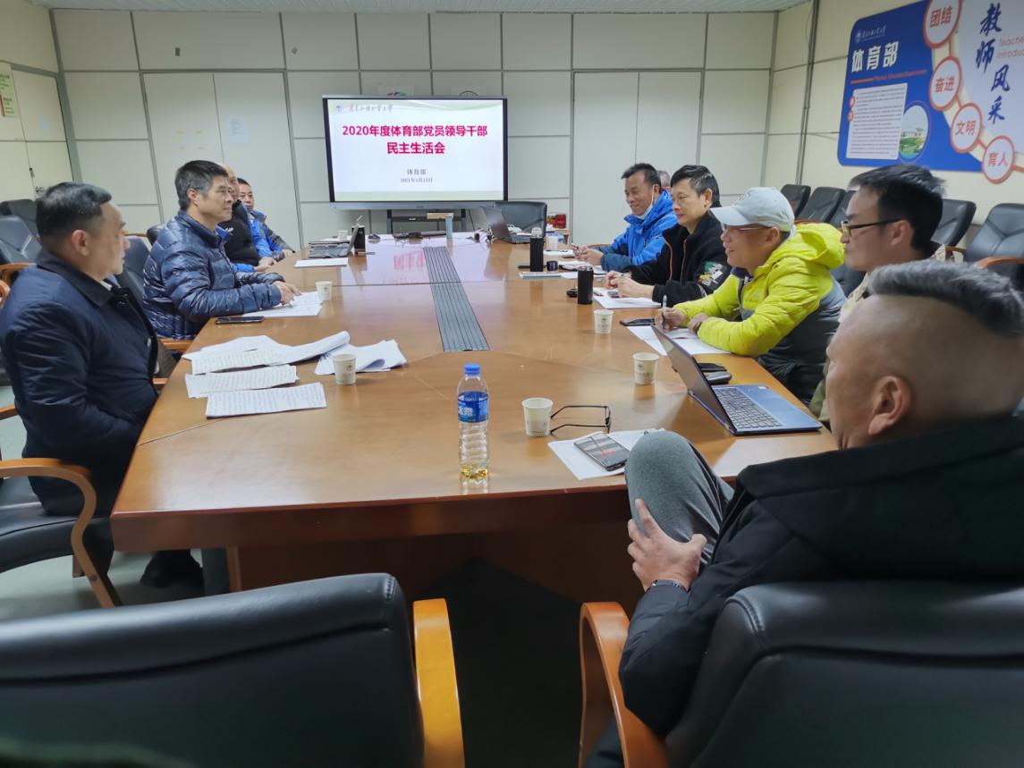 本网讯 根据学校党委《关于认真开好2020年度中层党员领导干部民主生活会的通知》(广外组〔2021〕1号)精神,1月12日上午,体育部在南校区体育馆会议室召开2020年度党员领导干部民主生活会,体育部党政领导班子成员、党总支委员、支部书记、体育部中层以上领导干部参加了会议,会议由体育部党总支书记何伟儒主持。