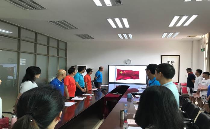 党总支部全体人员起立奏唱国歌