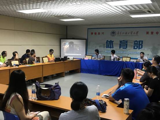 本网讯 为深入学习贯彻习近平新时代中国特色社会主义思想和党的十九大精神,认真学习贯彻习近平总书记重要讲话精神,增强政治敏锐性和鉴别力,2018年9月27日上午9点30分,体育部在南校区体育馆新闻发布厅召开2018年纪律教育学习月暨师德建设主题教育月大会。体育部领导班子成员及在职教师共48人参加。