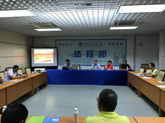 本网讯 2018年6月28日下午,体育部为落实校党委组织部《关于做好2018年度(年中)基层党组织书记抓基层党建述职评议考核工作的通知》的要求,在南校区体育馆新闻发布厅召开党总支书记李旭武同志的2018(年中)基层党建述职会议。参加述职会议的有广东外语外贸大学党委常委、副校长焦方太,体育部领导班子成员和全体教工党员。