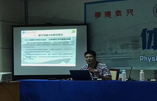 按照学校党委关于2018年度(年中)基层党组织书记抓基层党建述职评议考核工作相关文件要求,李旭武书记向与会的党员同志分别报告了三个方面的述职评议重点内容。