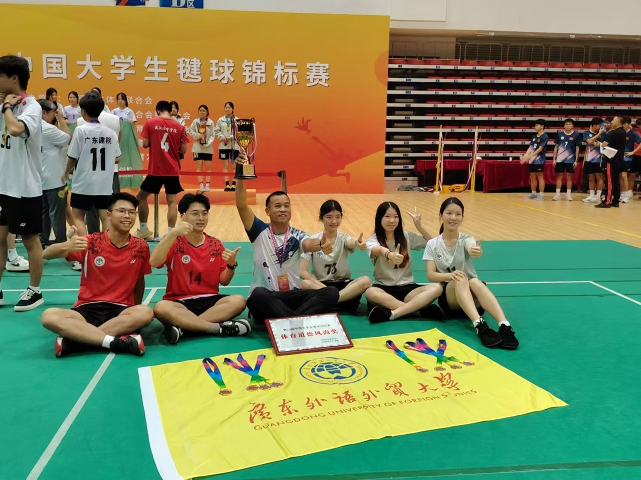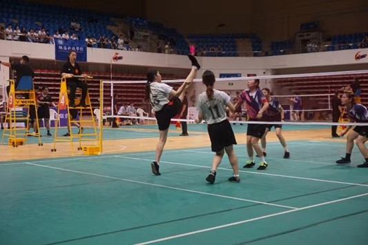 本网讯 第十三届中国大学生毽球锦标赛于2024年8月17-25日在山东省青岛市城阳区举行,来自全国各地有45所院校共489名运动员参加本次比赛。我校毽球队在省赛取得优异成绩后,领队黄德沂,教练员蔡德亮为了更好地锻炼队伍、培养新人,本次国赛共派出5名年轻队员参赛。成绩虽然没有超越往年,但也有突破,毽球队员与北京大学、南京大学等高校的运动员进行同台博弈,收获颇多,在甲组女子三人团体和甲组男子双人比赛中获得第三名,为自己争得了荣誉的同时也为学校争光。