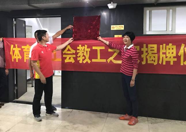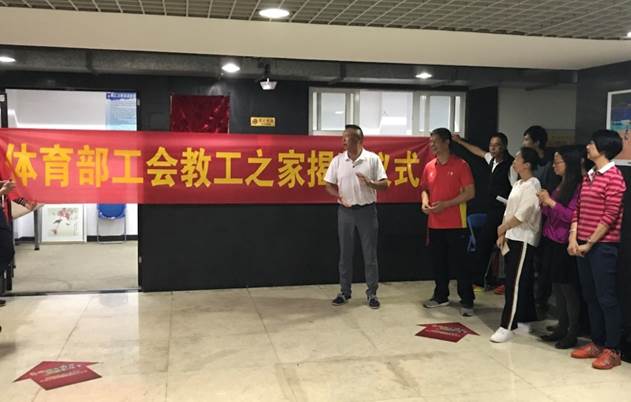 在揭牌仪式上,身为体育部教工代表的李旭武书记高度肯定了为成立教工之家而付出的各位教职工,并对他们表示了感谢。