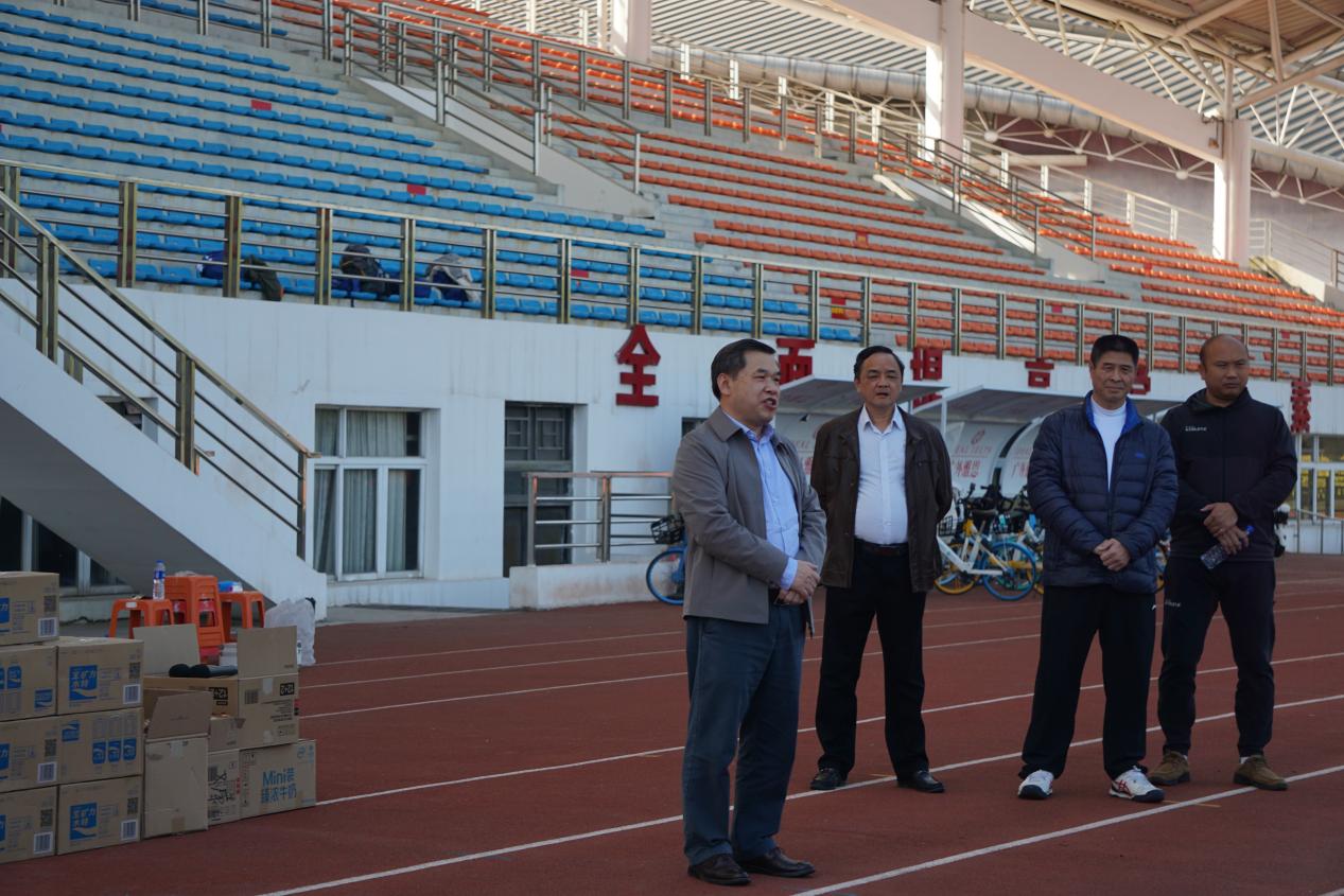 副校长焦方太到达训练场地后与各运动队运动员、教练员亲切交谈,听取教练员的训练工作情况,了解队伍在备战过程中遇到的问题和困难,及时给予协调和解决,并向各运动队送上慰问品。