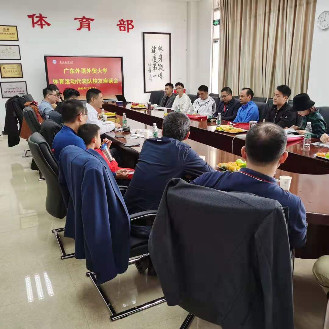 上午10:00,体育运动代表队校友座谈会在北校区体育部会议室拉开了序幕,座谈会由体育部主任李旭武主持,全体校友和运动队教练代表参加。校友们全神贯注地观看了宣传片《凤起岭南 逐梦广外》;认真细致地翻阅着羊城晚报中“广东外语外贸大学建校55周年纪念版”、学校宣传册和体育部宣传册,兴致勃勃地分享着自己在学校运动队的过往,回忆着那段璀璨的青春,感慨万千,惊喜于学校体育事业和体育设施的发展,并对学校体育运动、建设及发展提出了很好的建议和思考。