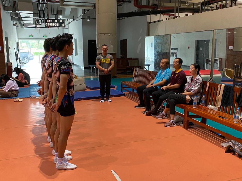 在全国学生运动会健美操大学组主教练黎良发的指导下,运动员们有条不紊的进行了成套前的热身,调动起身体和情绪为测试作好准备。这次测试运动员们的心理素质明显提高,以较为饱满的精神状态作出了成套展示,稳定地发挥出了正常水平。相较于第一次赛前测试,所有项目的成套都有明显的进步,这显然说明教练员和运动员们的努力取得了不错的成效。