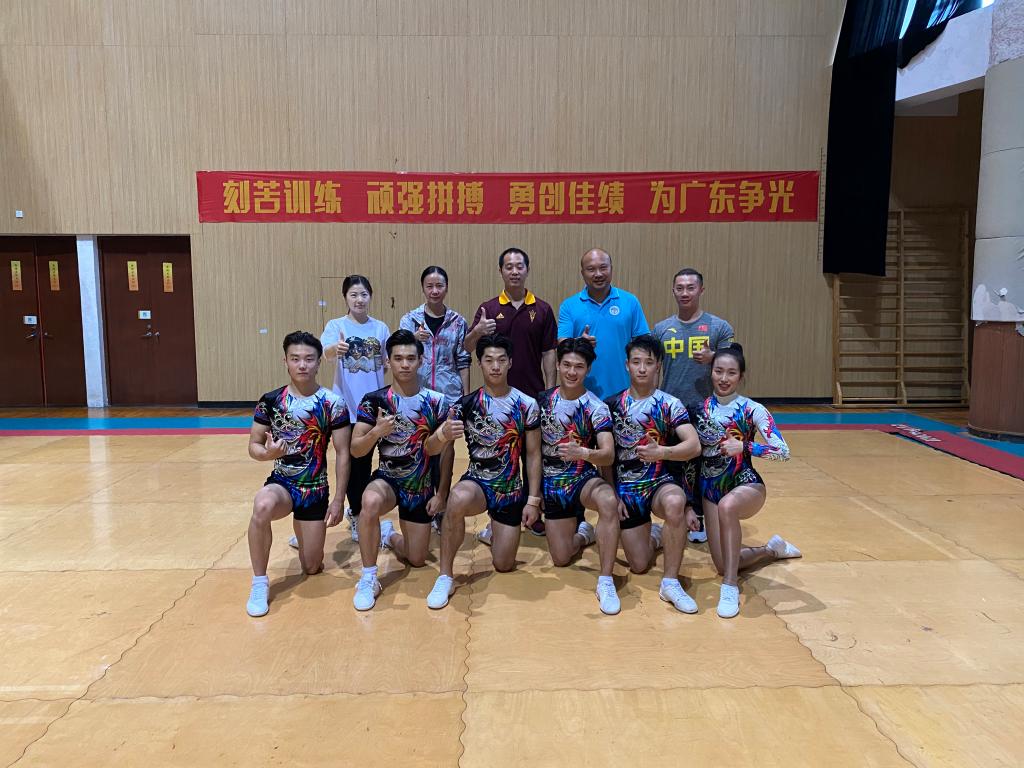 本网讯 10月7日,中华人民共和国第十四届全国学生运动会广东健美操代表队大学组运动员们的赛前第二次测试在体育馆副馆进行。为了检验广东代表队教练和运动员们的训练成果,广东外语外贸大学黄德沂副主任、华南理工大学庄巍教授 、华南理工大学丁文老师在百忙之中莅临广东外语外贸大学,对大学组的运动员们作出动员和指示。