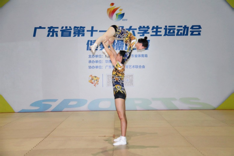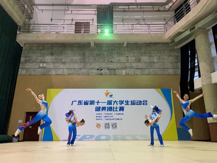 2022年5月22日至23日,广东省第十一届大学生运动会健美操比赛在华南理工大学以线上直播方式举行,我校体育健儿在比赛中获得两金一银一铜,团体总分第一名的好成绩。