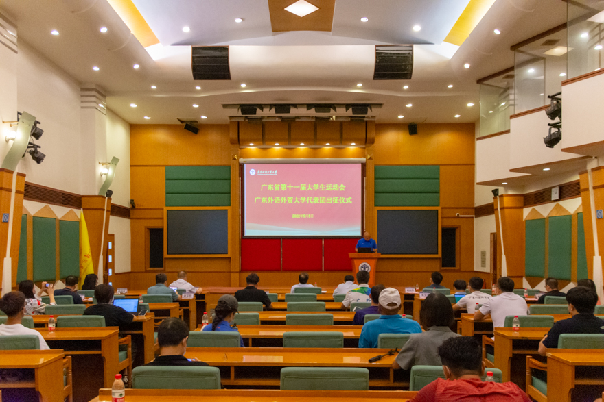 焦方太在讲话中指出,广东省大学生运动会作为四年一届的省级大学生体育盛会,既是我省大学生竞技运动水平的最高体现,也是展示我校学子良好精神风貌的绝佳机会,更是对我校对外竞赛水平的集中检阅。他对参赛工作提出了四点要求和希望。一是寄语运动员们努力拼搏,赛出广外风采,为我校争得荣誉。二是对赛风赛纪提出高要求,对兴奋剂“零容忍”。三是要求各部门切实做好后勤工作,为运动员提供有力保障。四是提醒各运动队密切关注、掌握疫情防控形势,科学制定赛事疫情防控应急方案,确保师生安全。