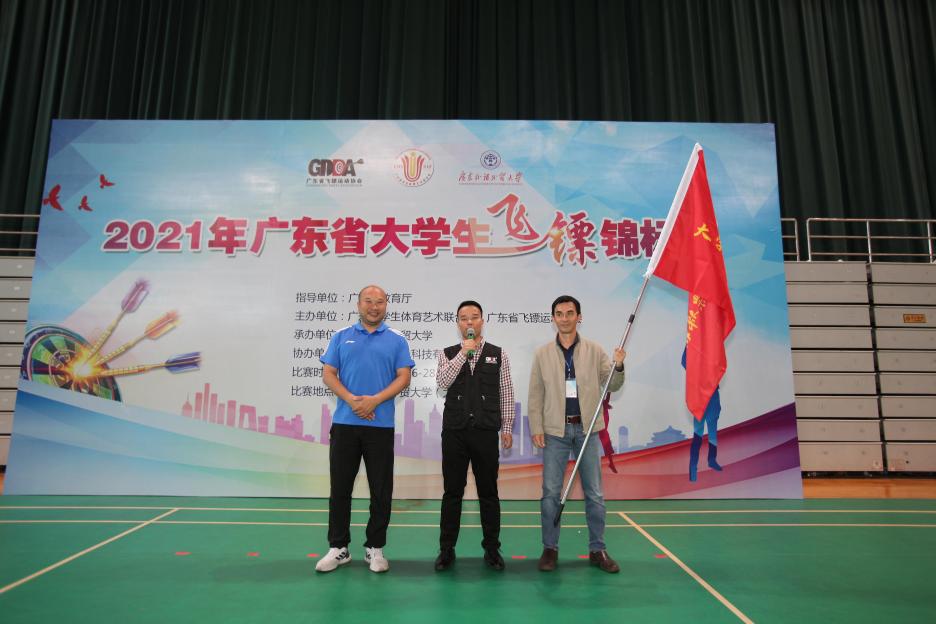 赛后,由广东省飞镖协会组织了广东省大学生飞镖锦标赛的交旗仪式,体育部黄德沂副主任将省大学生飞镖锦标赛的旗帜交给下届赛事承办方广东金融学院,至此2021年广东省大学生飞镖锦标赛圆满落幕。