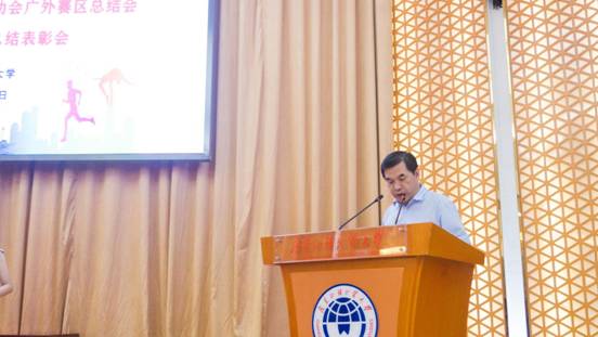 焦方太副校长对本次大运会广外赛区的工作进行了总结报告。他将此次承办任务的完成程度概括为:“领导重视,分工明确,形成合力;精心策划,统筹协调,狠抓落实;各部门协调配合,坚持标准,确保质量。”广外赛区获得“优秀赛区”的光荣称号,离不开广大参与者的共同努力。最后,他还表达了以本次大运会为契机、继续建设国际化特色鲜明的高水平大学的美好希冀。