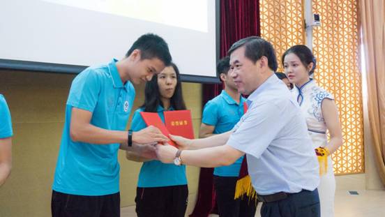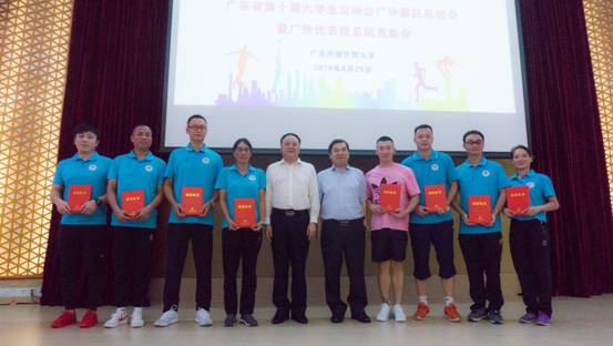 随后,广东外语外贸大学校长石佑启、副校长焦方太为广东省第十届大学生运动会广外代表团优秀运动队、广外代表团优秀教练员以及广外代表团获得大运会金牌的运动员颁发奖状。