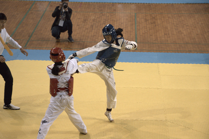 比赛分为两天。在12月22日,我校成绩亮眼。在上午的品势比赛中,参加混双品势的赖锦凤、肖炜楠;参加女子团体品势的胡晓筠、程洁、周曼琦;参加女子个人级位赛的钟明宇、孙佳琪;参加男子个人级位赛的郭伟杰都给裁判留下了深刻印象。最后,我校郭伟杰在男子个人级位赛中摘得铜牌,女子团体品势也获得了第五名的好成绩。 在下午的竞技比赛中,我校女子62kg级选手赖锦凤一马当先,斩获首金。