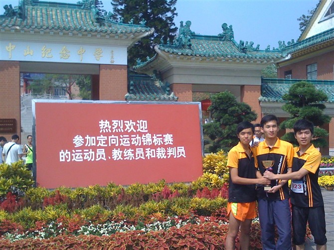 本网讯 10月31日、11月1日两天,09广东省学生定向运动锦标赛在中山纪念中学举行,我校派出9名运动员参加了大学甲组共5项目比赛。在短短两天的里,广外定向越野队以团结拼搏的精神,再创佳绩,喜获团队第六的辉煌战绩。其中沈泽优、蔡文轩、王居冠三人发挥出色,分别夺得男子团队赛大学甲组冠军,为广外定向越野史再添华丽一笔。
