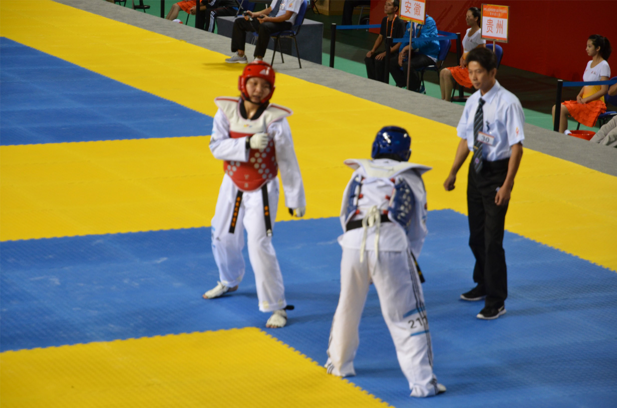 跆拳道是首次出现在大运会的赛场上的体育项目。与往常的跆拳道比赛不同,此次比赛前三天为竞技比赛,重量级由大到小;后两天为品势项目的比赛。首日,肖扬同学一路过关斩将最终决赛以7:4的成绩打败天津选手路正,摘得男子62公斤级桂冠,是广东跆拳道队的首枚奖牌,也是广东代表团夺得第五块金牌。我校思科信息学院的黄婷同学挑战海南选手失败,最终获得女子72公斤级第五。