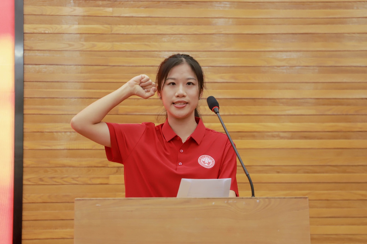 我校健美操队教练员黎良发代表教练员宣誓,承诺将秉承科学训练的原则,以饱满的精神投入备战,结合运动员实际制定个性化训练方案,助力每一位队员突破极限、提升竞技水平。在即将到来的大运会比赛,将全力以赴、攻坚克难,力争在赛场上创造佳绩。
