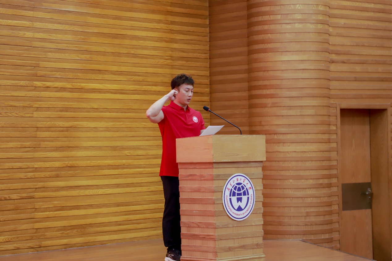 何传添在致辞中代表学校向一直支持竞赛训练工作的各代表队领队,向夜以继日刻苦训练的全体运动员、倾注心血的教练员团队,以及默默付出的后勤保障人员,致以最崇高的敬意和最真挚的感谢。他指出,大运会是我省规模最大、规格最高的青年体育盛会,既是对我校竞技体育水平的全面检验,更是展现广外人“挑战自我、超越自我、完善自我、追求卓越”精神风貌的绝佳舞台。对即将到来的比赛提出四点嘱托:一是严守安全底线,为比赛护航;二是全力以赴争佳绩,为学校争光;三是强化后勤保障,为佳绩筑基;四是恪守体育精神,为广外树誉。