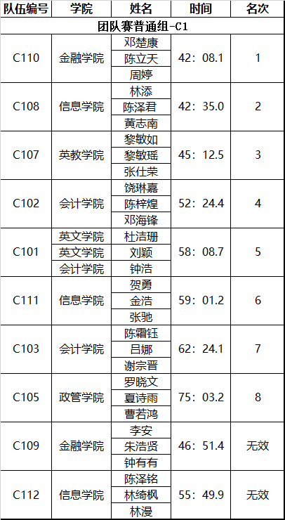 值得一提的一点是在三人团队赛进行时天空下起了蒙蒙细雨,但没有一支竞赛队伍放弃比赛,依然能够完成团队任务,展现我校学子永不言弃的精神品质。
