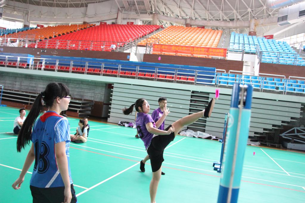 本网讯 2016年5月22日上午9:00,由广东外语外贸大学体育委员会主办、广东外语外贸大学体育部承办、广外毽球协会协办的第十二届广外杯毽球赛在广东外语外贸大学南校区体育馆正式开幕。本次的活动本着友谊第一的运动精神,让参赛队员充分的发挥自己的技艺。比赛目的是为用运动的形式让各毽球爱好者加强交流,各成员相互切磋,同时使同学们能够有一个展示自身球技的舞台。